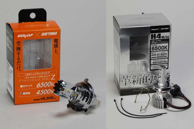 ▲Precious Ray Z(左)和傳統的Precious Ray(右)都是Daytona公司的產品, 由“ BELLOF”和“ DAYTONA”共同開發的新產品,被稱為LED燈泡的頂級製造商。 尺寸緊湊令人難以置信,燈泡尾端有一個散熱裝置,並通過線束與電源連接,而新的Precious Ray Z幾乎與普通燈泡大小相同。