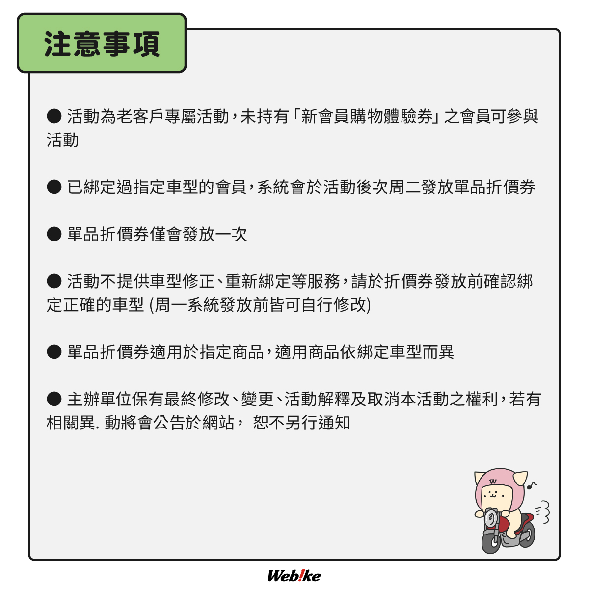 ●活動不提供車型修正、重新綁定等服務,請與折價券發放前確認綁定正確的車型