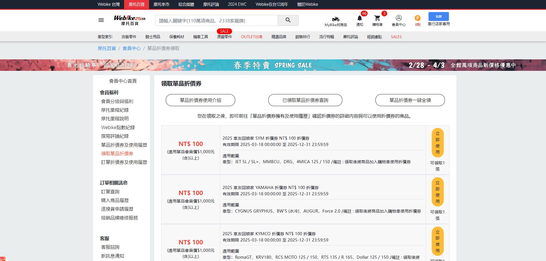 3.進入頁面後即可領取 「2025 車友回娘家 折價券 100 元」