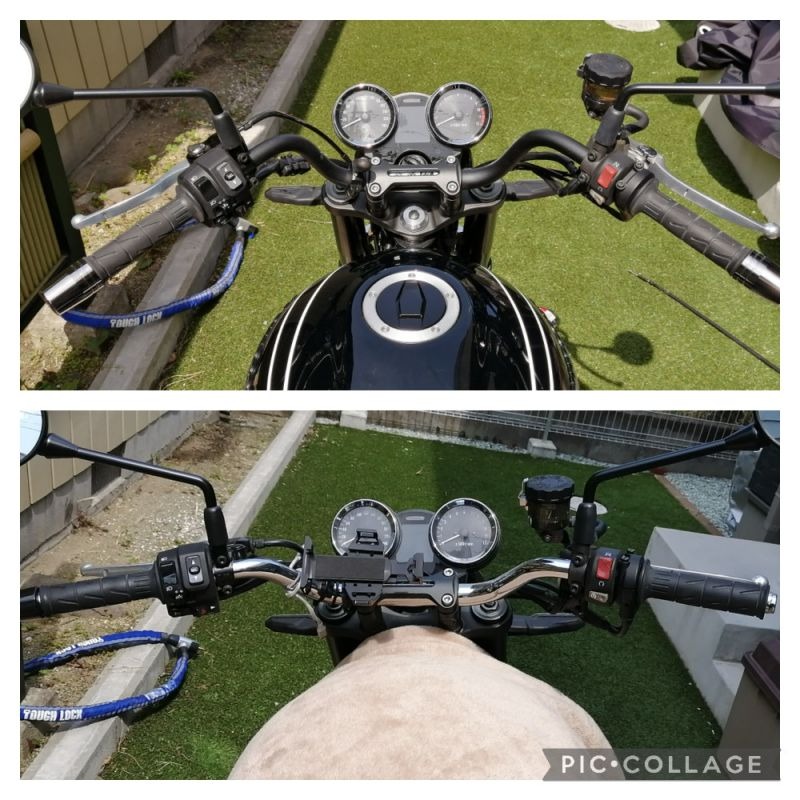 「上面是武蔵改,下面是原廠。這組把手和 Z900RS 的騎姿,對我來說『200% 適合』。姿勢非常輕鬆,簡直是無上的快適!目前我找不到比這更舒服的把手了!」