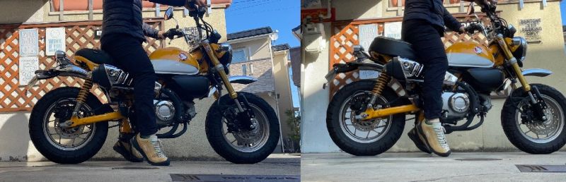 「為了身高 150cm 的妻子買的。……結果,雙腳著地性顯著地變好了!連原廠坐墊做不到的夾油箱動作現在也可以了。