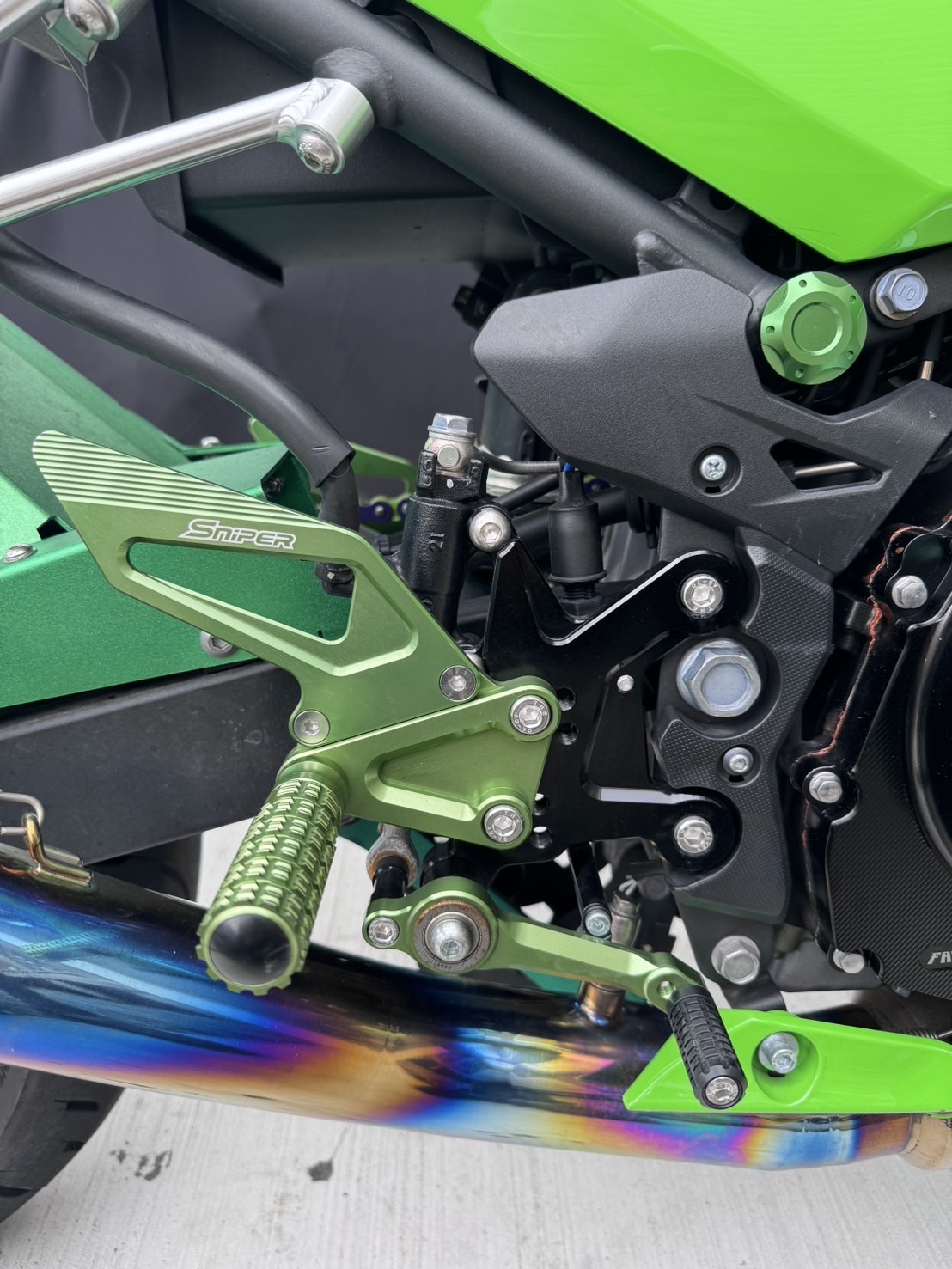 「為了搭配 Ninja 400 的綠色車身而買。……實際裝上去後,『與車色非常搭配,超級帥氣』。換檔和煞車的回饋感也很好,過彎不再磨腳踏,非常滿意。