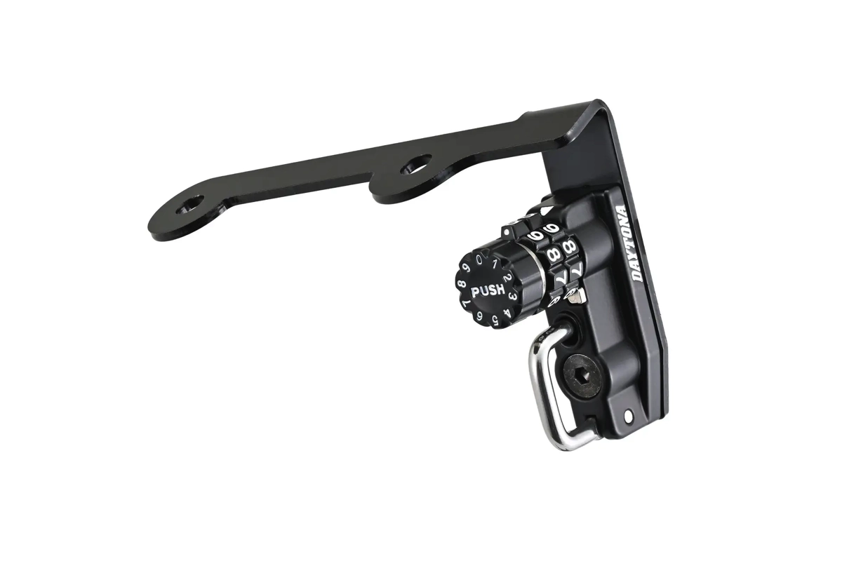 鋁合金後箱用底板針對 CB1000F 專屬設計,在未載物的情況下仍維持良好外觀協調性。可同時安裝Daytona 下面介紹的兩款安全帽鎖/頭盔鎖(62591 / 62589)。