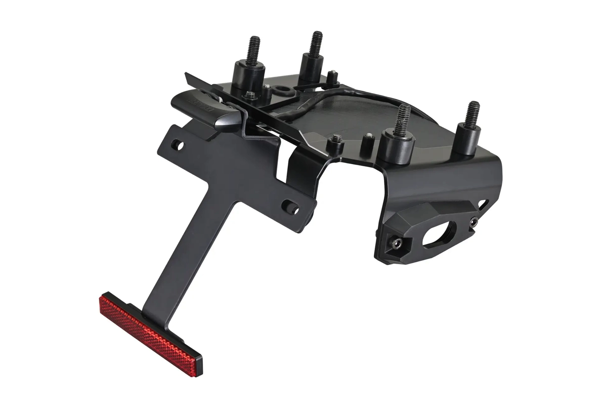 讓車尾線條更緊湊、更俐落。方向燈可沿用原廠零件。內附小型 LED 牌照燈與窄型反光片。以直上(Bolt-on)與對接(Coupler-on)設計,安裝簡易。可搭配另售的 M1 方向燈底座(93393),也可更換為其他副廠方向燈。