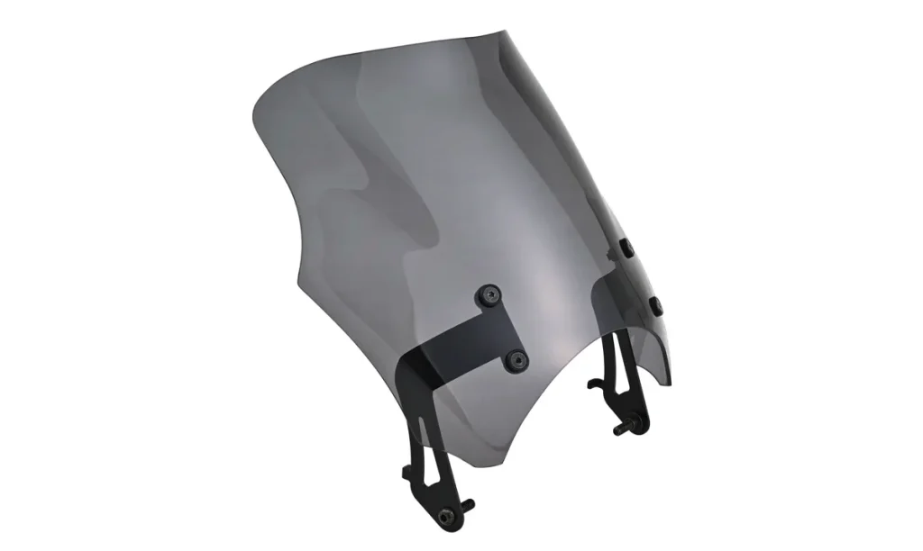 採用日本製高透明度 3mm 聚碳酸酯(Polycarbonate),擁有比同厚度的壓克力高出約 30 倍的耐衝擊性,具備強度且維持視覺低失真效果,提供優異的安全性與絕佳的擋風阻導流效果,以及高速巡航時的穩定性。