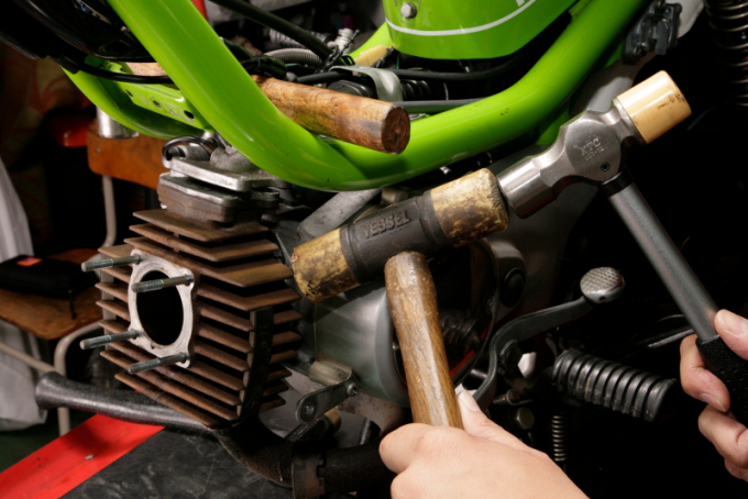 二行程引擎的最大魅力在于,只要稍微去除一下汽缸和汽缸盖周围的积碳,基本维护工作就算是完成了,比四行程引擎更方便快速。另外,由于引擎不像四行程那样有凸轮链条和进排气阀,所以引擎的拆装和重新组装都非常容易,这对于当时没有专用工具和维修手册的年轻骑士来说,是一个很大的优势。