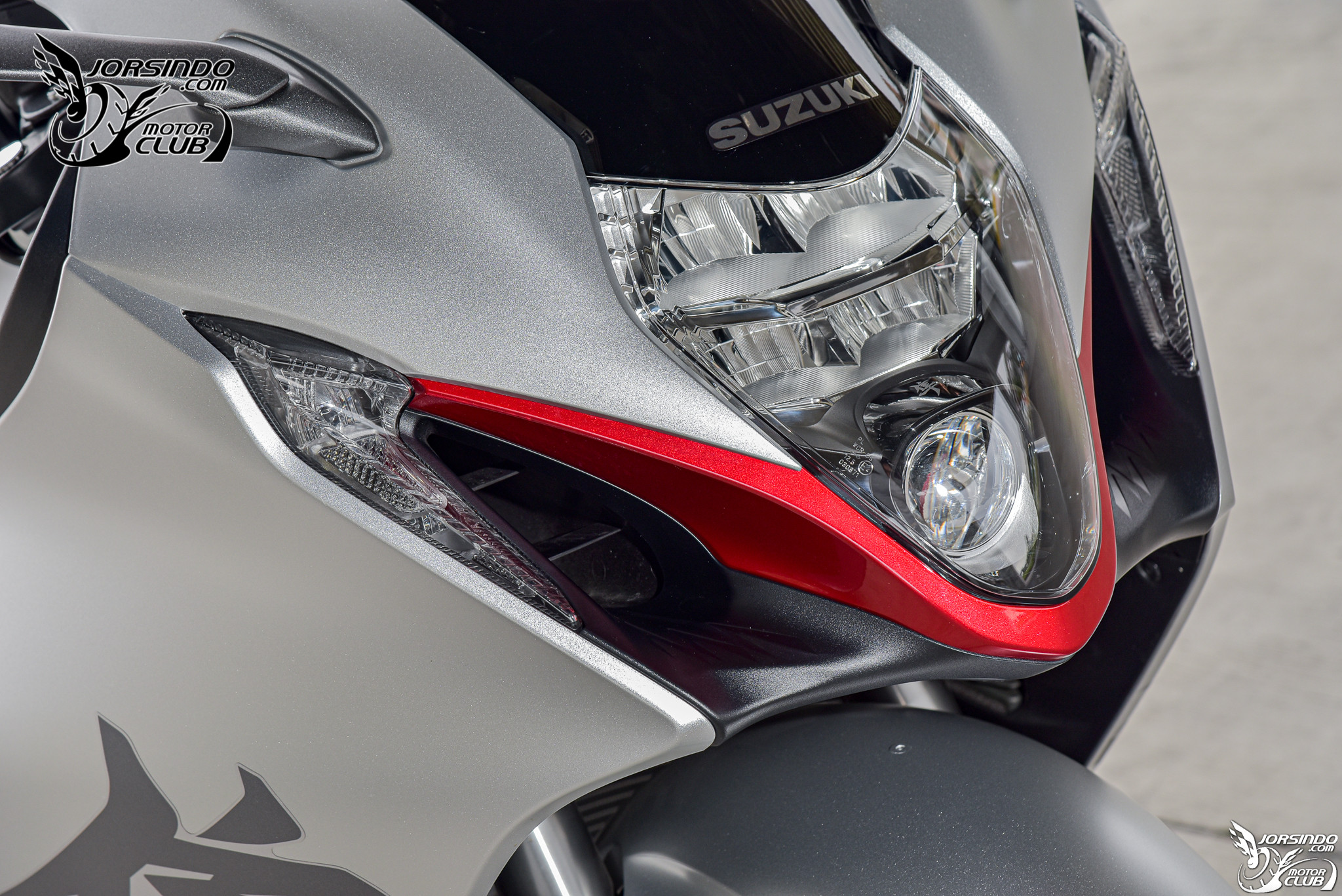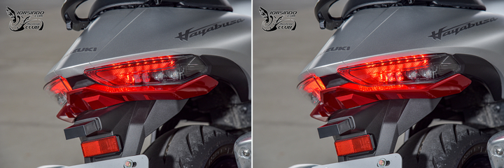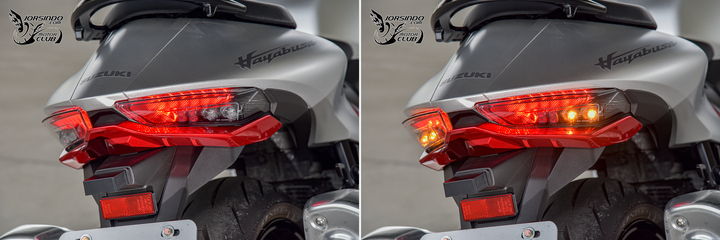 本次 HAYABUSA 在面相上变得更加锐利有杀气,并在头灯方面导入 LED 灯具,结合车头下缘向两侧斜上延伸的“隼喙”,给人十足的速度感。