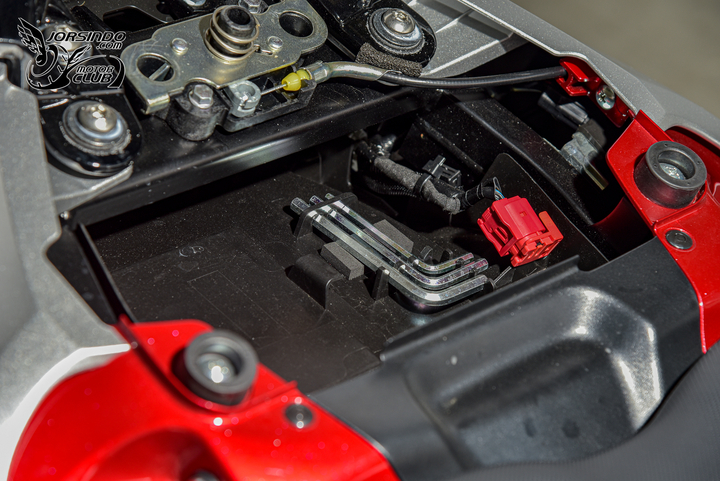 坐垫下方空间同样附有随车工具,且空间相当宽敞,但深度方面表现普通,目测可以置入皮夹、手机、手套等物品,行车纪录器主机等车载电子配件同样能轻松置入。