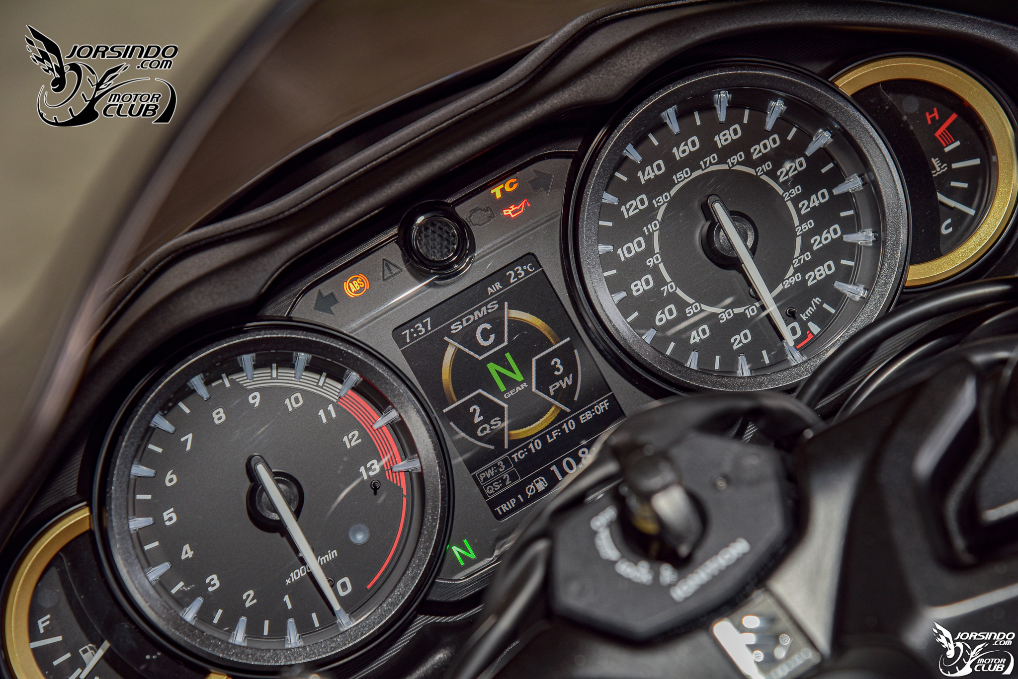 第三代 HAYABUSA 在仪表设计方面采用左右四环表加上中央 TFT 仪表设计,四环表部分由左至右分别为“油表”、“转速表”、“时速表”、“水温表”等,而中央 TFT 仪表则可显示各式行车资讯,在转下电门后可以看到中央 TFT 仪表显示出新世代的“隼”字样,更加锐利苍劲的笔触勾勒出“强而有力”的视觉印象。
