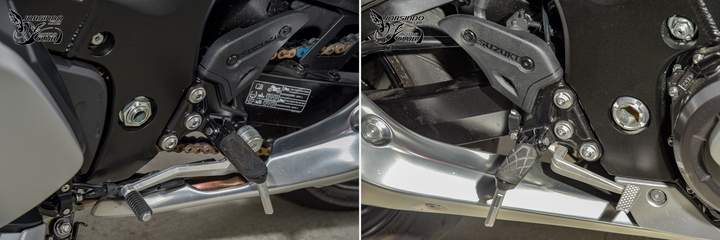 骑士脚踏为不可调整的形式,位置比前代略高一些,让骑士在骑乘时能与“隼”更加融为一体,而为了强化舒适性,在脚踏与车架连接处采用了橡胶套筒来强化减震效果。