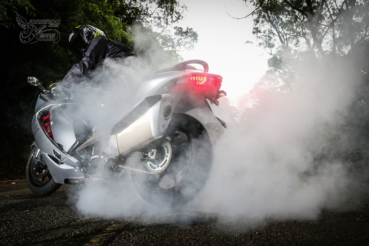 最后用这张又大又长的原厂排气管做结,可以看到从中段到尾端间有完整包覆,尾段部分则设有台湾特产“特仕版防烫盖”,不过从造型上判断,HAYABUSA 的防烫盖应为新设计的零件,与过去台铃大重机种使用的防烫盖设计不同。