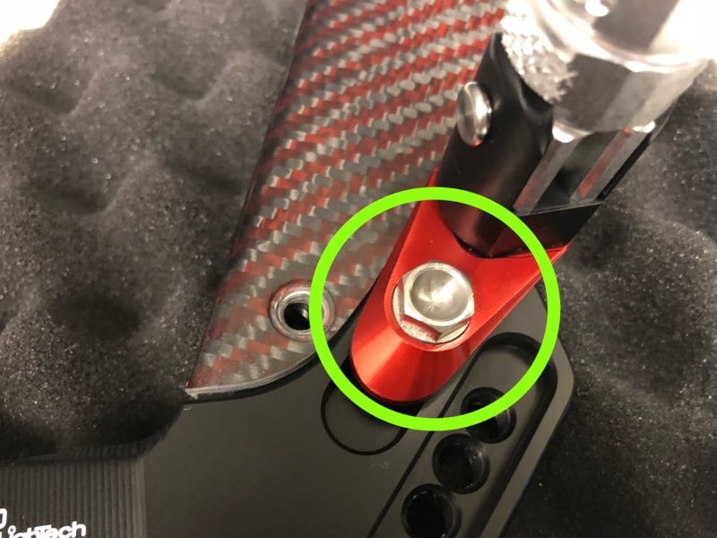 ▼ 黑色底座上的红色乾式碳纤维脚踝护板,具有奢华及存在感的脚踏后移套件