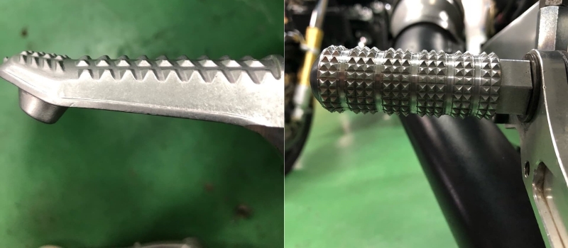 脚踏后移套件的另一个特色就是,脚踏杆皆有滚花刻纹,这个刻纹能提供有效的止滑作用,让车靴可以更稳固的踩踏在脚踏杆上,就算是下雨天骑乘也不会轻易滑开!