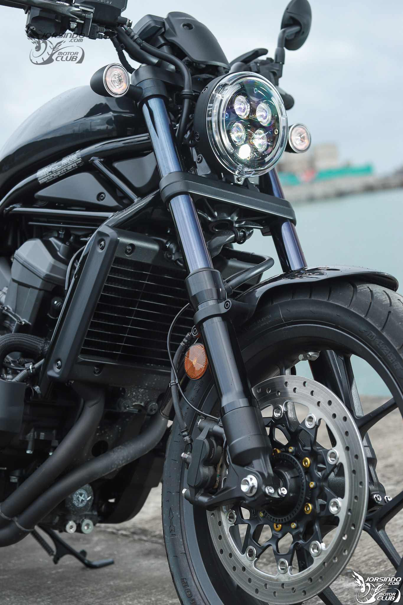 Rebel 1100 仅有 35 度最大倾角,因此就别太期待他的弯道性能啦,脚踏造型也有点随便 (小声说)。