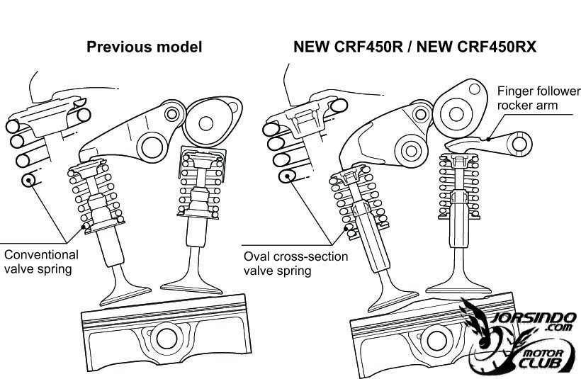 #结构类似上图,但这是新旧款 CRF450 的 Unicam 结构比对。