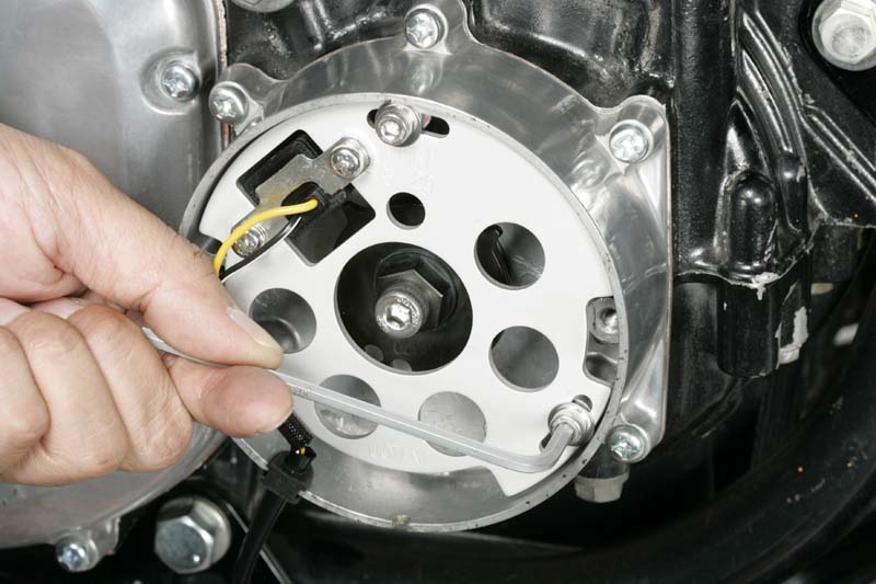 要將SPⅡ全功率套件安裝上引擎時,請先拆下側蓋,並卸下內部鎖緊的底座和調速器,然後固定套件附的專用轉子。除了發送信號的凸出凸起外,轉子還具有指示上死點的T標記 (上標記)和點火正時的10標記 (意味著上死點之前10度)。