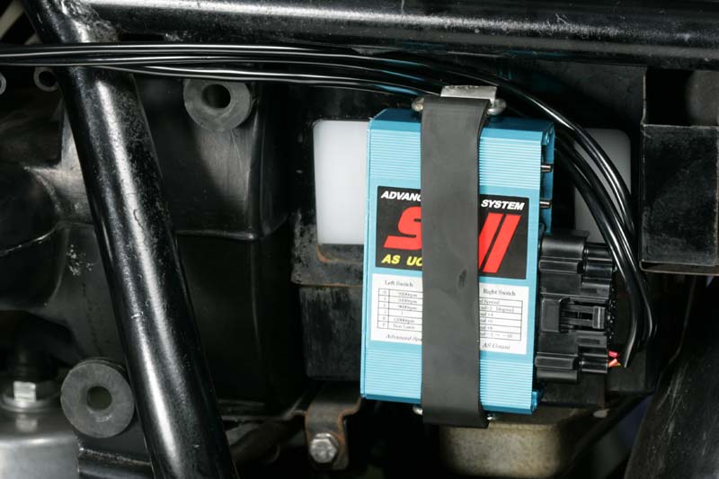 要固定控制單元的話,請彎曲鋁條以形成特殊的支撐,然後使用油箱安裝螺絲將其支撐固定。該裝置是帶有橡皮筋的浮動支架。通過這種安裝方法,支架和皮帶都能有效吸收振動。