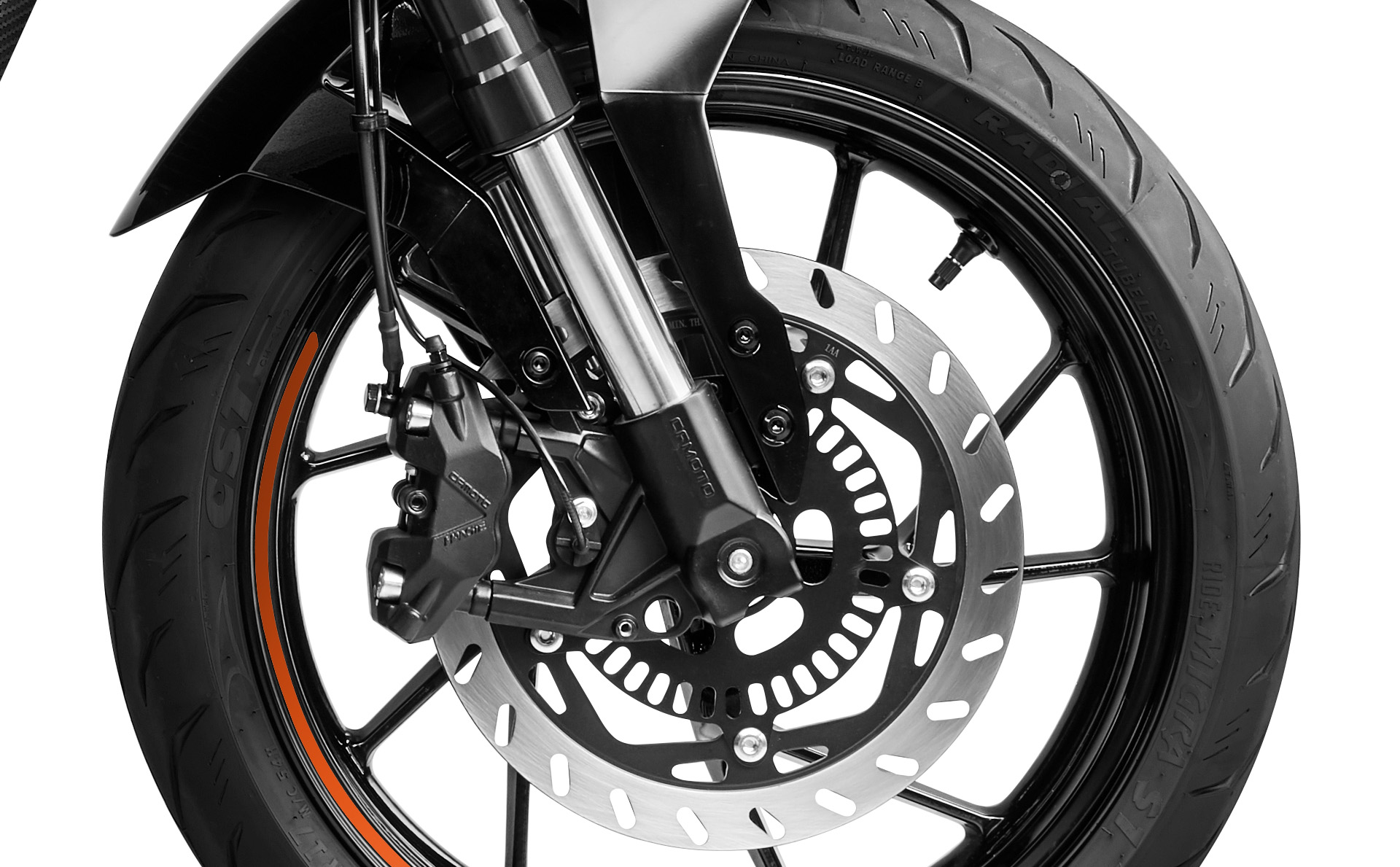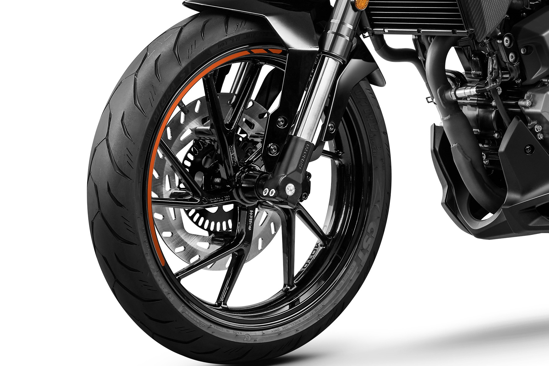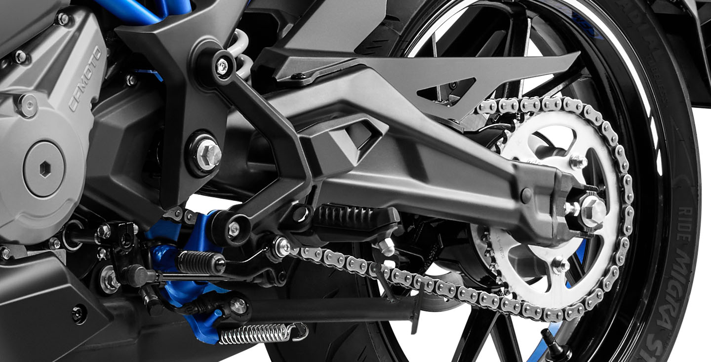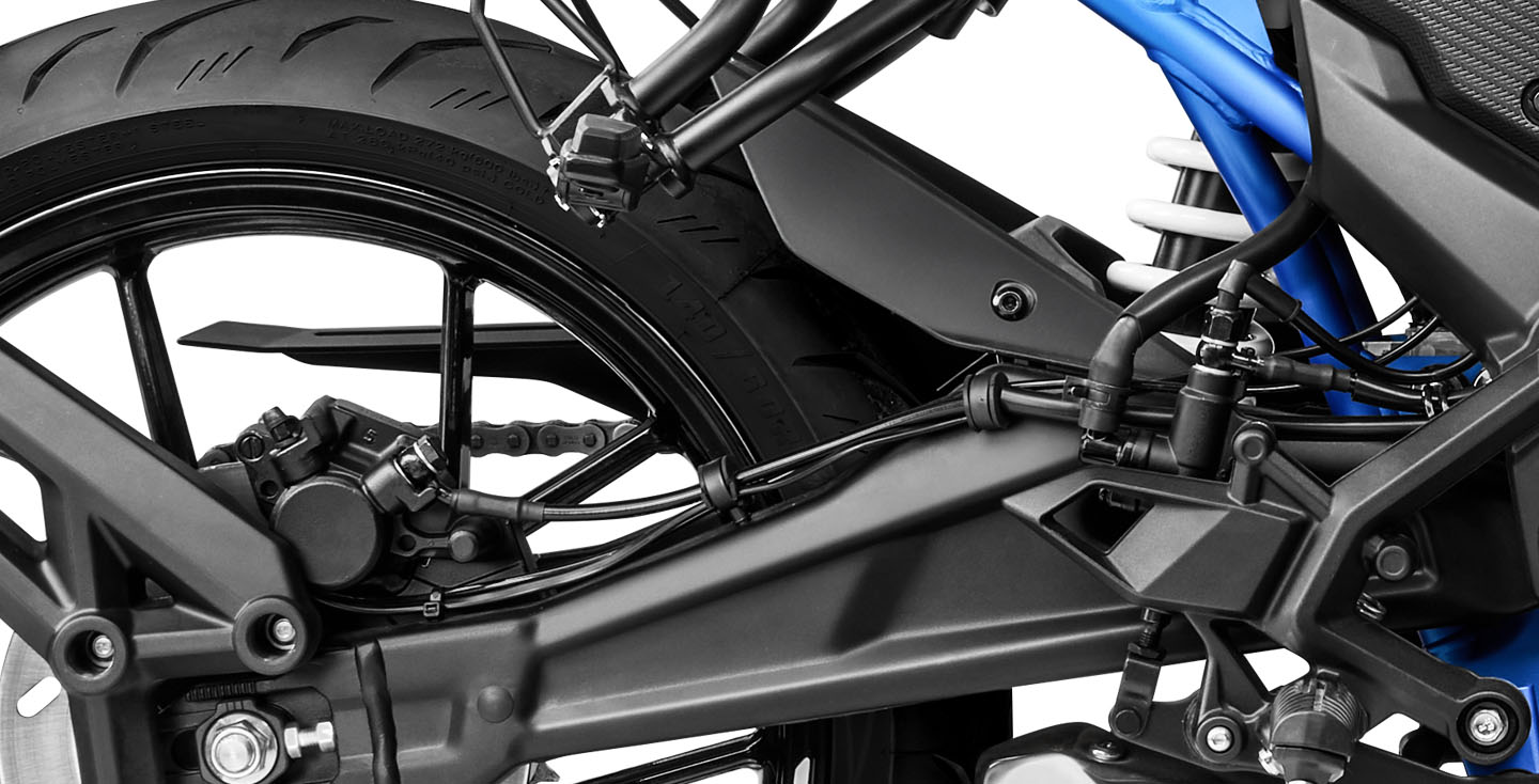 懸吊部分,250NK採用倒立式前叉與中置單槍後避震的常見設定,煞車系統皆為碟式煞車,前後輪胎尺寸分別為110/70-R17和140/60-R17,座墊高度則為795mm,油箱容量12.5公升、車身重量158kg。