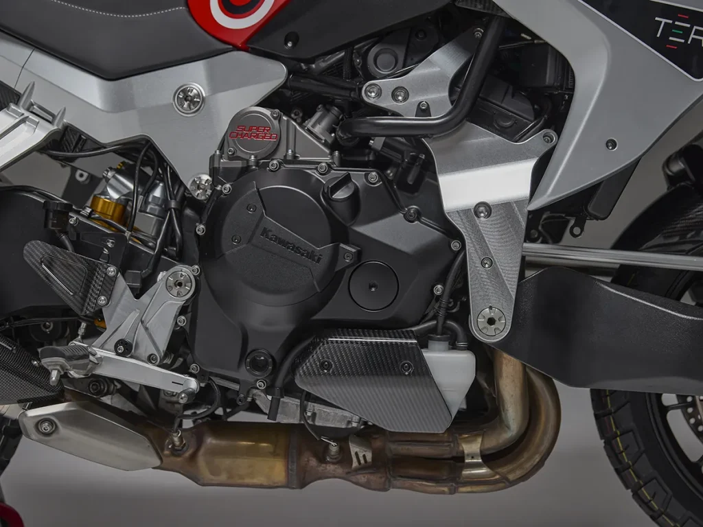 動力單元採用「Ninja H2」系列的998cc機械增壓並列四缸引擎,可產生147.1kW(200PS馬力)最大馬力與137N·m(13.9kgm)最大扭力。