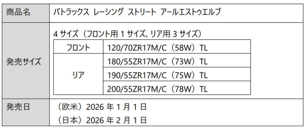 提供前輪1種尺寸、後輪3種尺寸。預計明年2月於日本上市。