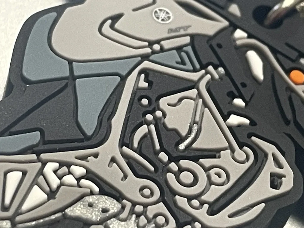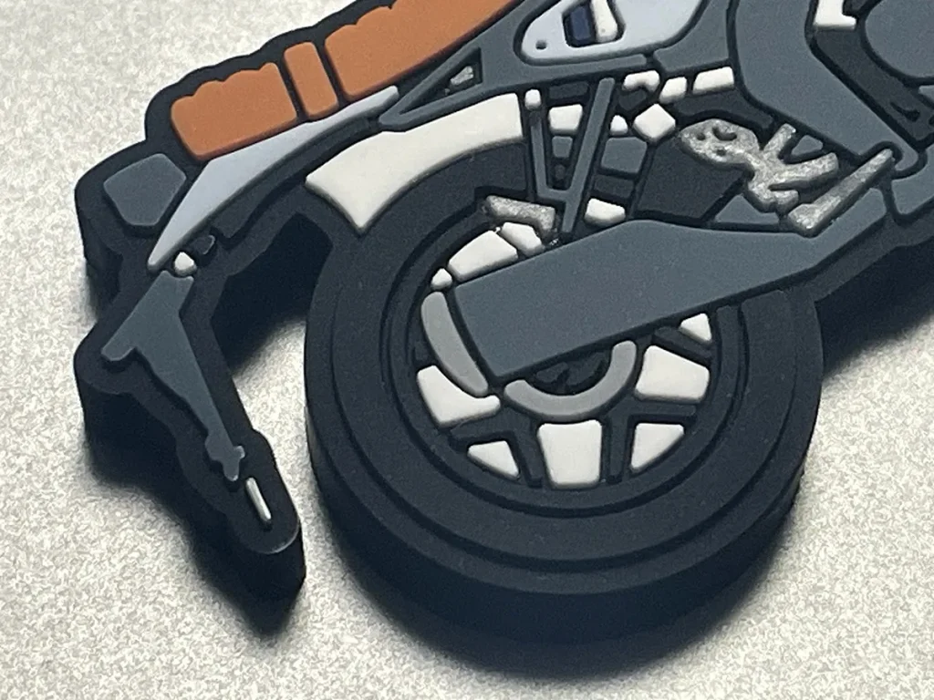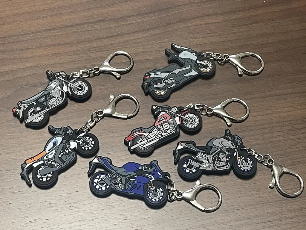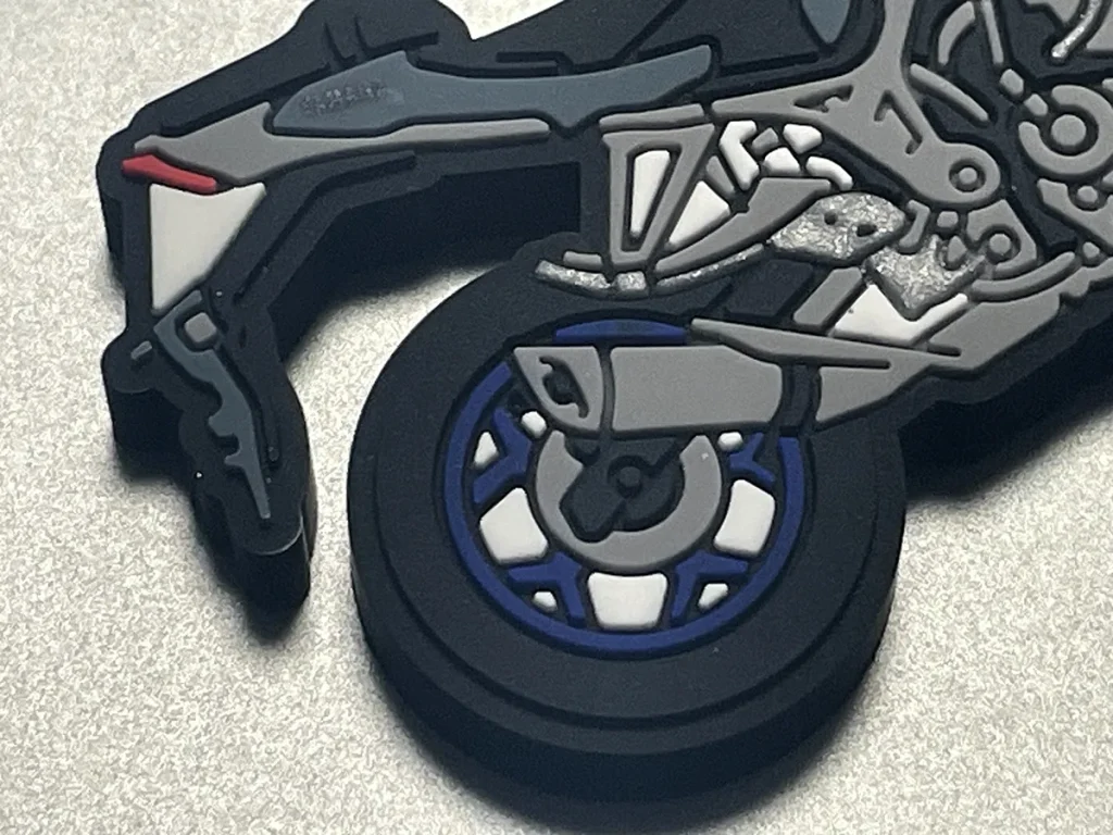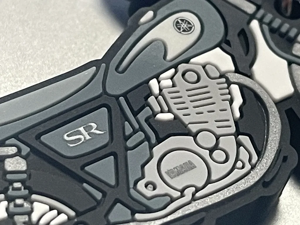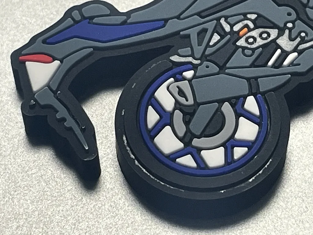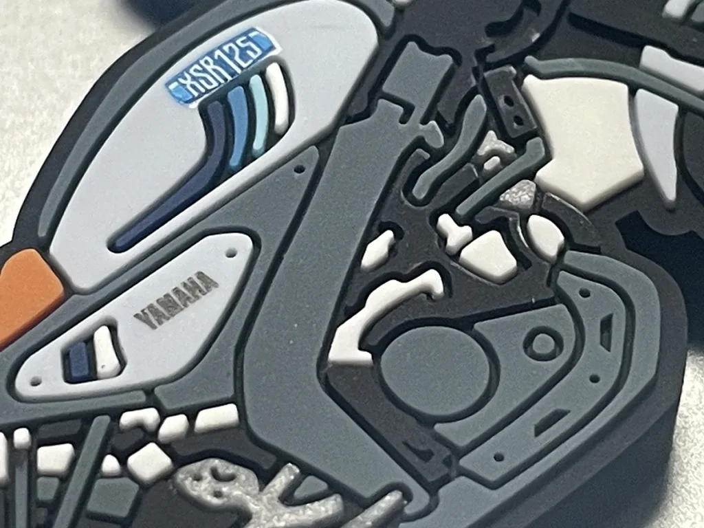 這些橡膠吊飾並非單純印刷圖案,而是以立體方式用不同顏色材質重現機車造型。根據車款不同約使用5-8種顏色,連引擎與油箱紋理等細節都精細還原。